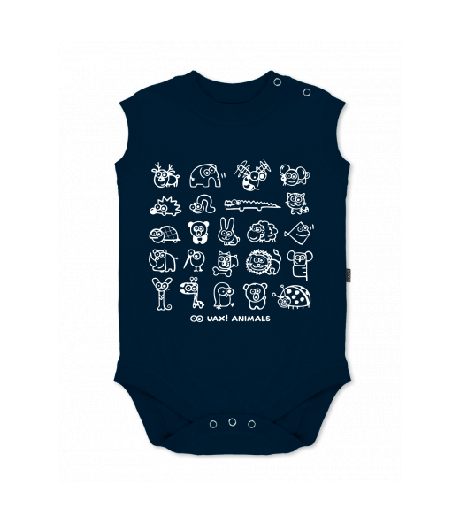 Baby body sleeveless with design for kid with design 1168 UAX! ANIMALS in color DARK NAVY