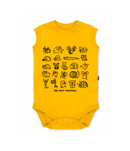 Baby body sleeveless with design for kid with design 1168 UAX! ANIMALS in color GOLDEN CREAM
