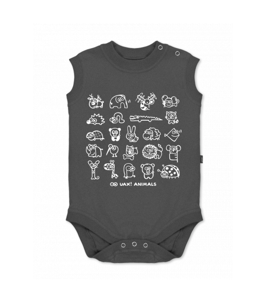 Baby body sleeveless with design for kid with design 1168 UAX! ANIMALS in color GRAFIT