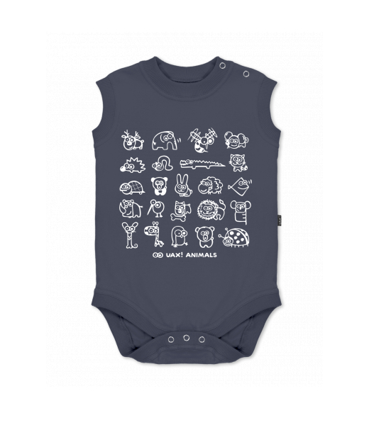 Baby body sleeveless with design for kid with design 1168 UAX! ANIMALS in color GRAY INK