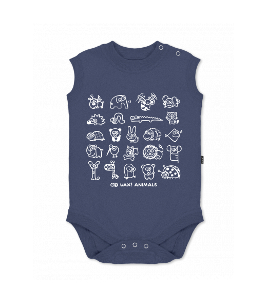 Baby body sleeveless with design for kid with design 1168 UAX! ANIMALS in color JEANS