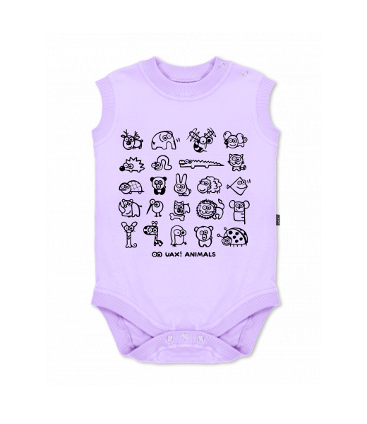 Baby body sleeveless with design for kid with design 1168 UAX! ANIMALS in color LAVENDER