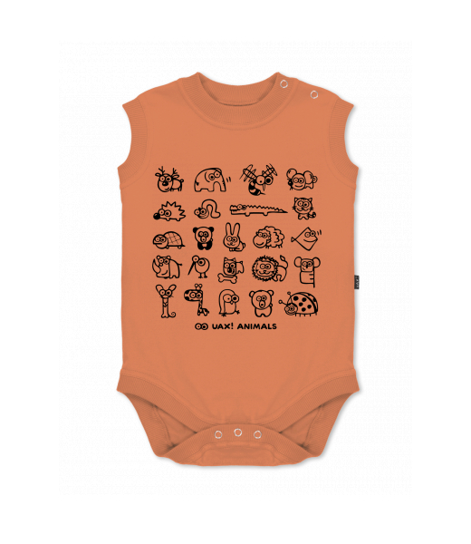Baby body sleeveless with design for kid with design 1168 UAX! ANIMALS in color MANDARIAN ORANGE