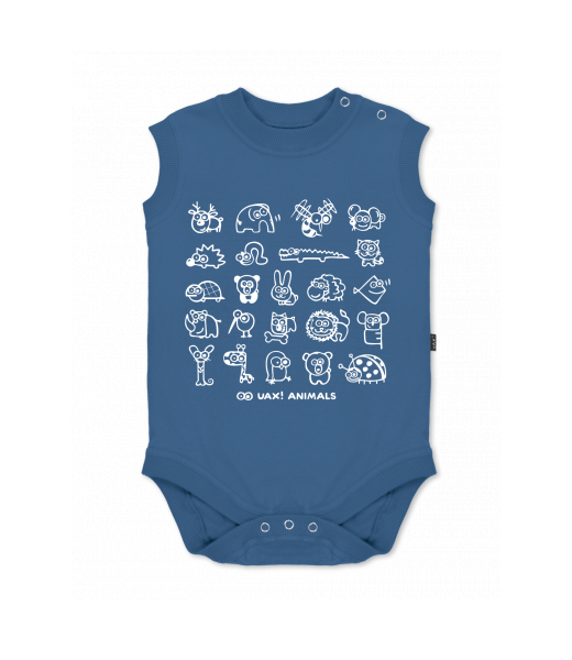 Baby body sleeveless with design for kid with design 1168 UAX! ANIMALS in color MOONLIGHT BLUE