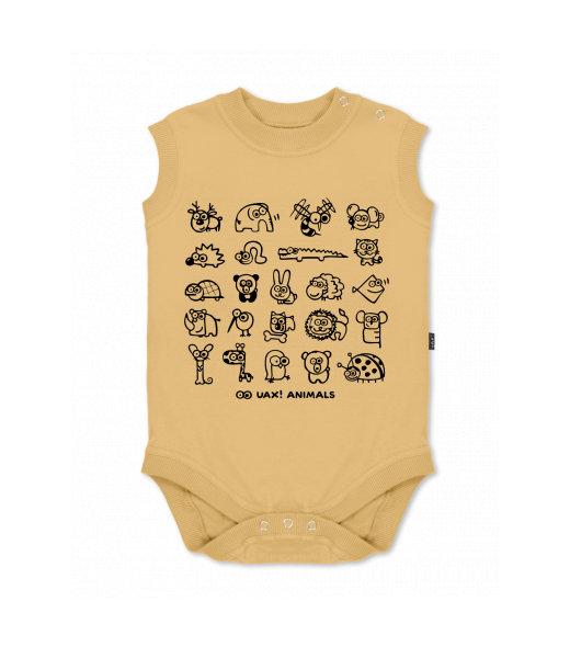 Baby body sleeveless with design for kid with design 1168 UAX! ANIMALS in color MUSTARD