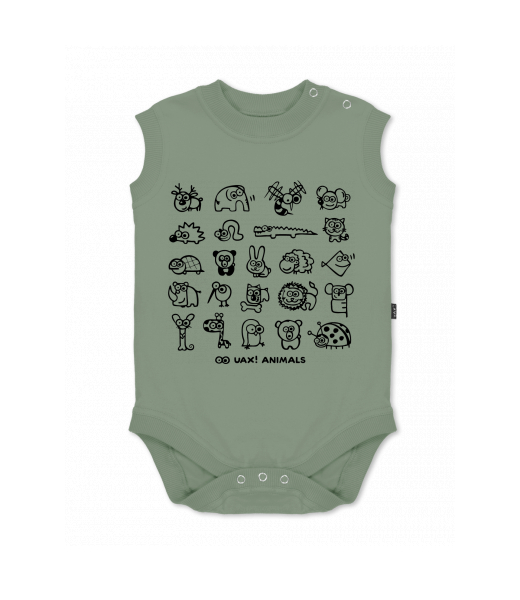 Baby body sleeveless with design for kid with design 1168 UAX! ANIMALS in color OLIVA
