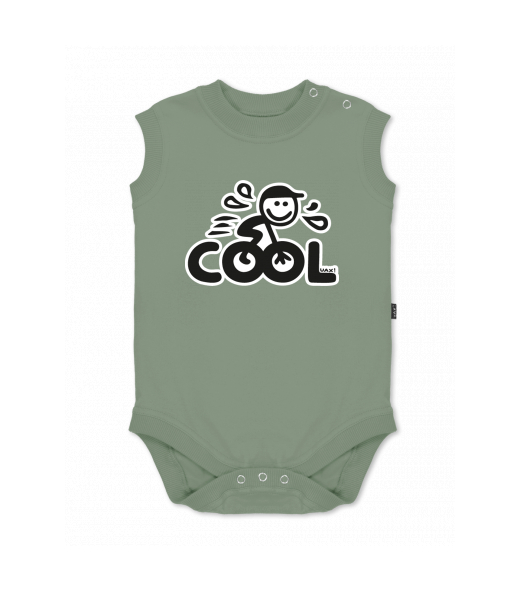Baby body sleeveless with design for kid with design 1169 COOL CYCLIST in color OLIVA