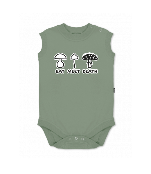 Baby body sleeveless with design for kid with design 1177 EAT MEET DEATH in color OLIVA