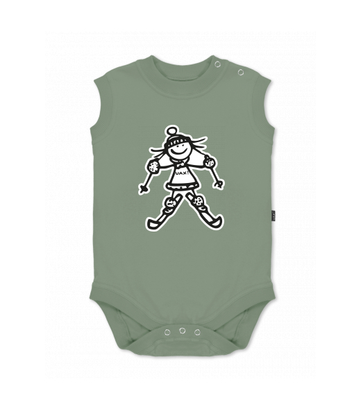 Baby body sleeveless with design for kid with design 1179 SKIER GIRL in color OLIVA