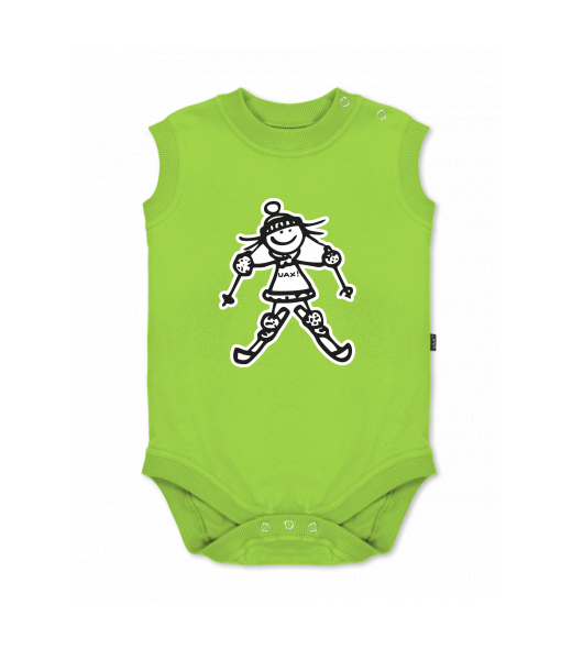 We make sustainable UAX clothing! - hand sewn in the Czech Republic uaxKids uaxAll productsBaby bodyBABY BODY SLEEVELESSdesign 1179 - SKIER GIRLPARROT GREEN