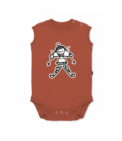 Baby body sleeveless with design for kid with design 1179 SKIER GIRL in color TERRA