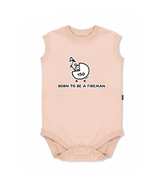 Baby body sleeveless with design for kid with design 1184 BORN TO BE A FIREMAN in color CAPPUCINO