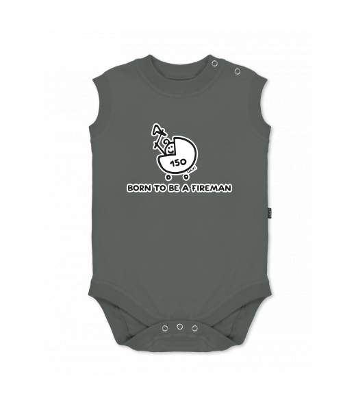 Baby body sleeveless with design for kid with design 1184 BORN TO BE A FIREMAN in color DARK GRAY