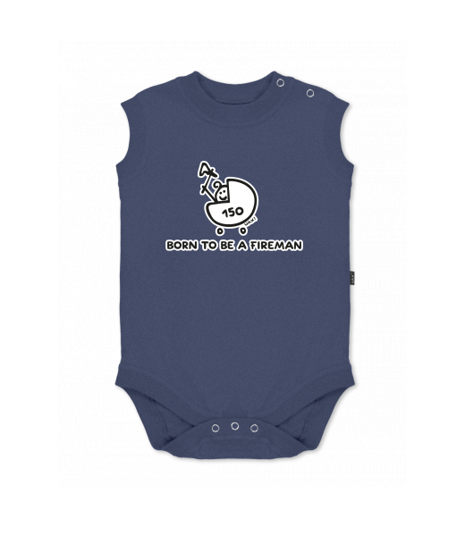 Baby body sleeveless with design for kid with design 1184 BORN TO BE A FIREMAN in color JEANS