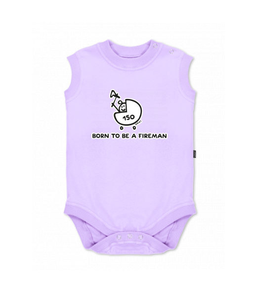 Baby body sleeveless with design for kid with design 1184 BORN TO BE A FIREMAN in color LAVENDER