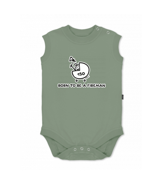 Baby body sleeveless with design for kid with design 1184 BORN TO BE A FIREMAN in color OLIVA
