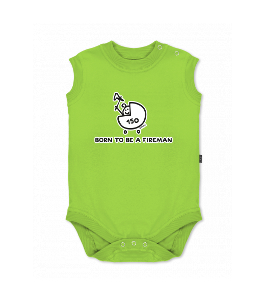 Baby body sleeveless with design for kid with design 1184 BORN TO BE A FIREMAN in color PARROT GREEN