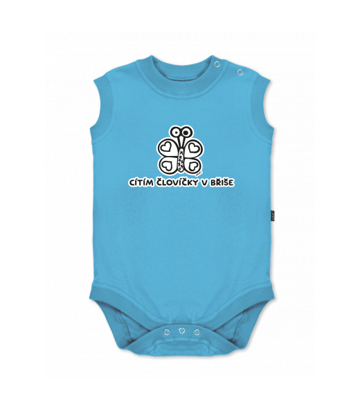 Baby body sleeveless with design for kid with design 1188 CÍTÍM ČLOVÍČKY V BŘIŠE in color BLUE ATOLL
