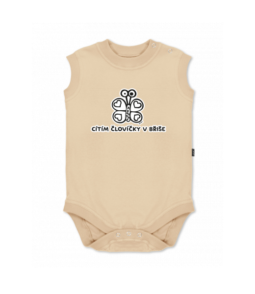 Baby body sleeveless with design for kid with design 1188 CÍTÍM ČLOVÍČKY V BŘIŠE in color CARAMEL