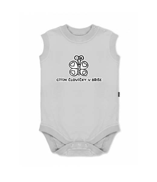 Baby body sleeveless with design for kid with design 1188 CÍTÍM ČLOVÍČKY V BŘIŠE in color CEMENT