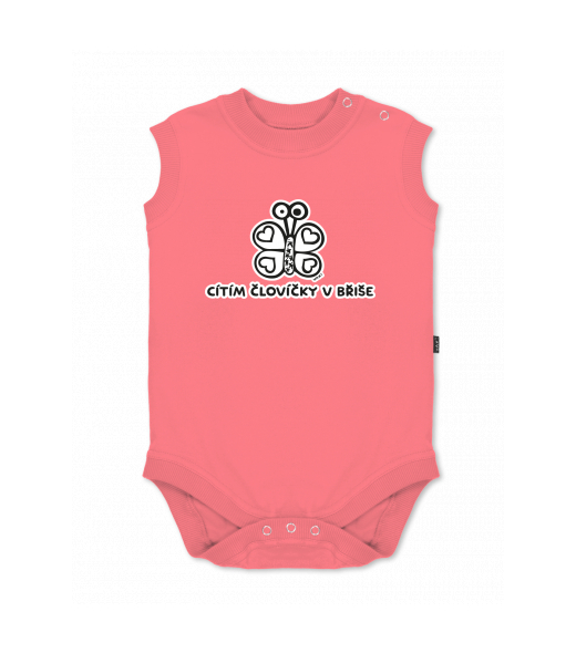 Baby body sleeveless with design for kid with design 1188 CÍTÍM ČLOVÍČKY V BŘIŠE in color LOSOSOVA