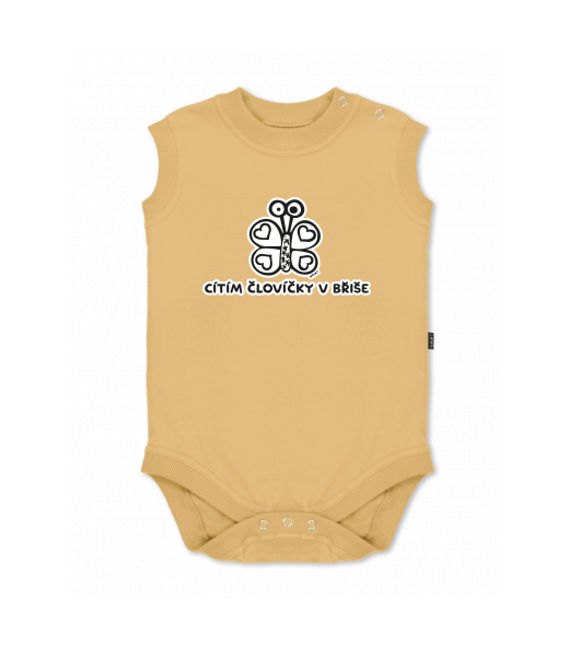 Baby body sleeveless with design for kid with design 1188 CÍTÍM ČLOVÍČKY V BŘIŠE in color MUSTARD