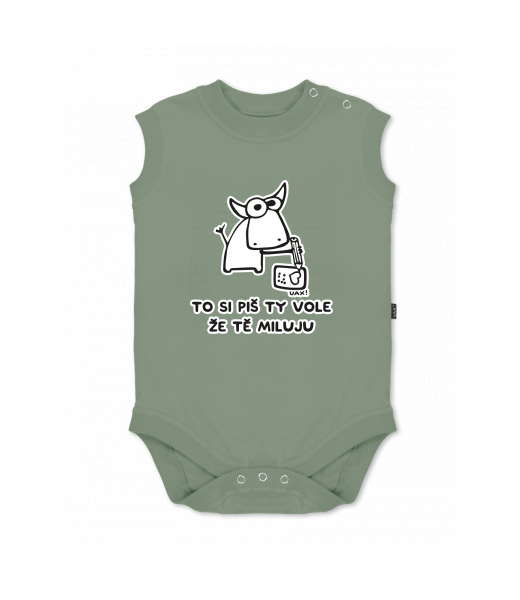 Baby body sleeveless with design for kid with design 1192 TO SI PIŠ TY VOLE ŽE TĚ MILUJU in color OLIVA