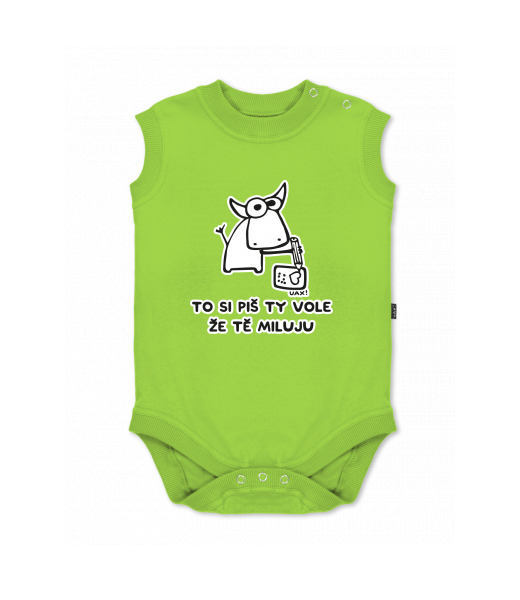 Baby body sleeveless with design for kid with design 1192 TO SI PIŠ TY VOLE ŽE TĚ MILUJU in color PARROT GREEN