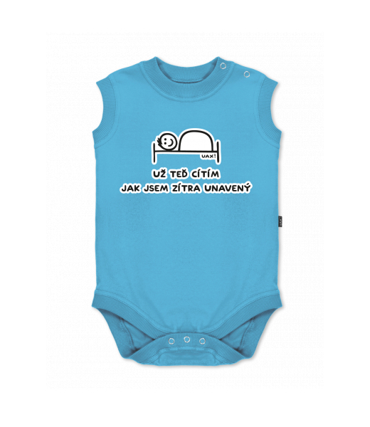Baby body sleeveless with design for kid with design 1200 UŽ TEĎ CÍTÍM JAK JSEM ZÍTRA UNAVENÝ in color BLUE ATOLL
