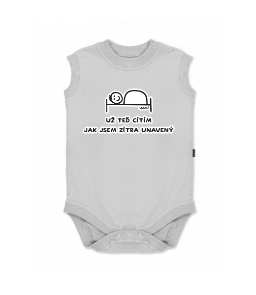 Baby body sleeveless with design for kid with design 1200 UŽ TEĎ CÍTÍM JAK JSEM ZÍTRA UNAVENÝ in color CEMENT