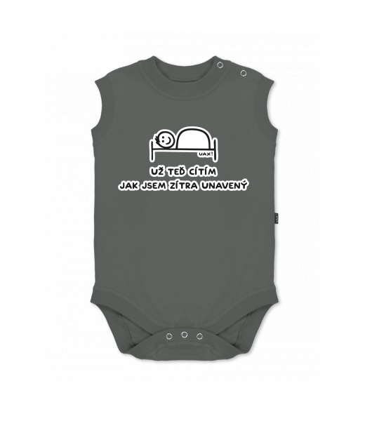 Baby body sleeveless with design for kid with design 1200 UŽ TEĎ CÍTÍM JAK JSEM ZÍTRA UNAVENÝ in color DARK GRAY