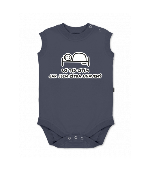 Baby body sleeveless with design for kid with design 1200 UŽ TEĎ CÍTÍM JAK JSEM ZÍTRA UNAVENÝ in color GRAY INK