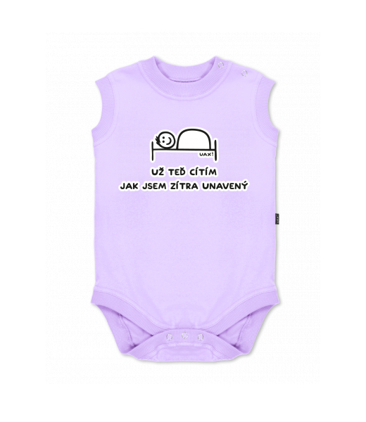 Baby body sleeveless with design for kid with design 1200 UŽ TEĎ CÍTÍM JAK JSEM ZÍTRA UNAVENÝ in color LAVENDER