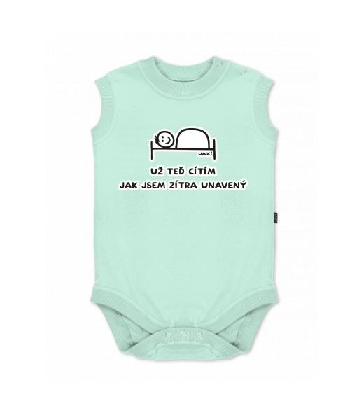 Baby body sleeveless with design for kid with design 1200 UŽ TEĎ CÍTÍM JAK JSEM ZÍTRA UNAVENÝ in color MINT