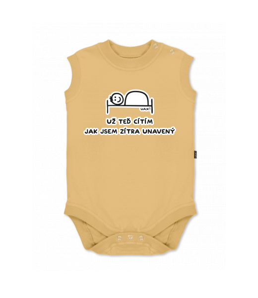 Baby body sleeveless with design for kid with design 1200 UŽ TEĎ CÍTÍM JAK JSEM ZÍTRA UNAVENÝ in color MUSTARD