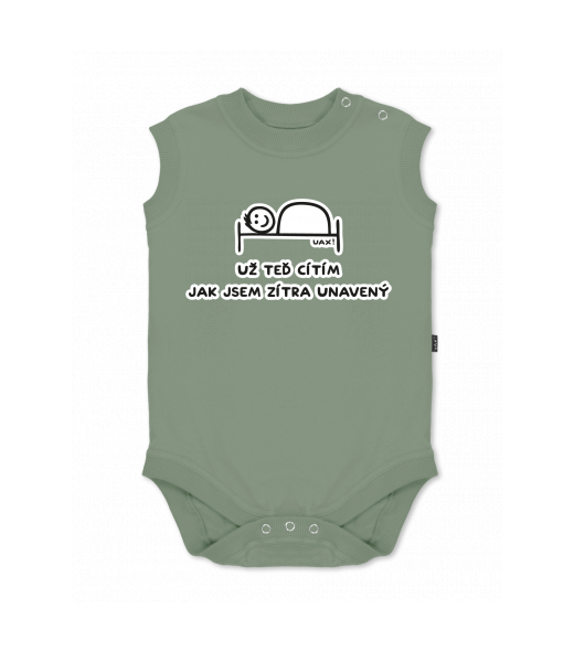 Baby body sleeveless with design for kid with design 1200 UŽ TEĎ CÍTÍM JAK JSEM ZÍTRA UNAVENÝ in color OLIVA