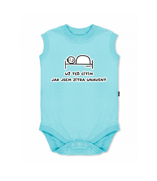 Baby body sleeveless with design for kid with design 1200 UŽ TEĎ CÍTÍM JAK JSEM ZÍTRA UNAVENÝ in color PASTEL BLUE