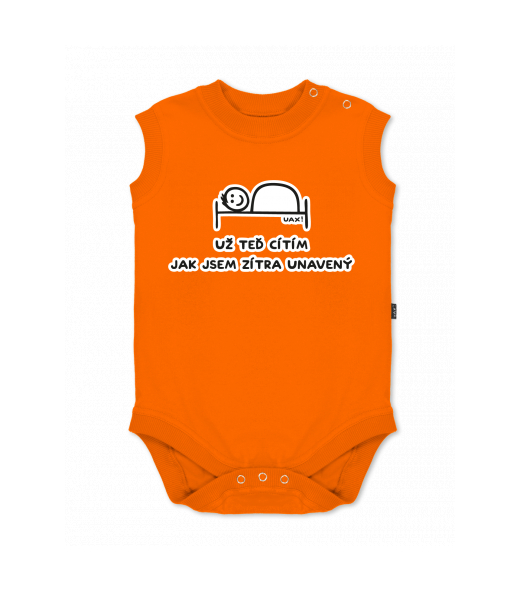 Baby body sleeveless with design for kid with design 1200 UŽ TEĎ CÍTÍM JAK JSEM ZÍTRA UNAVENÝ in color SIGNAL ORANGE