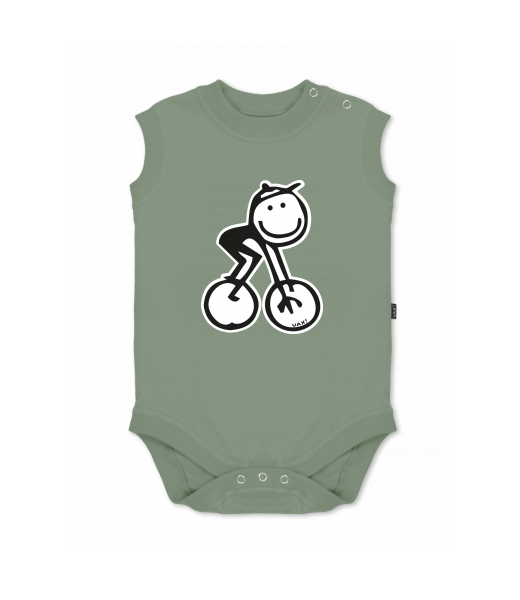 Baby body sleeveless with design for kid with design 1202 BIKE MAN in color OLIVA