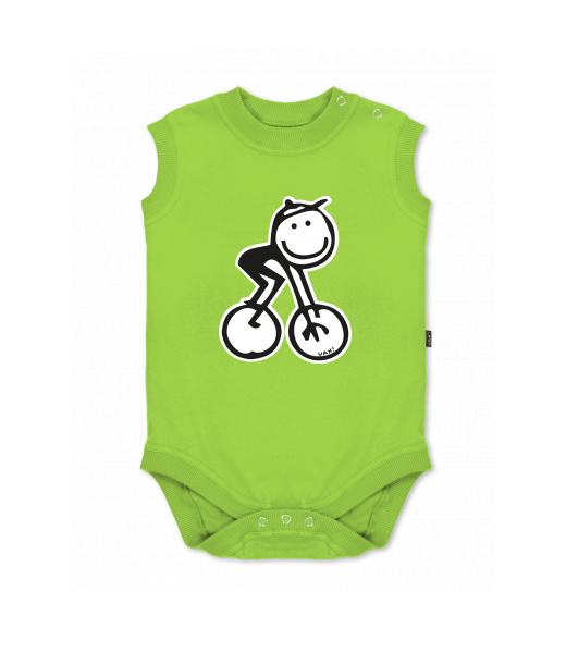 Baby body sleeveless with design for kid with design 1202 BIKE MAN in color PARROT GREEN