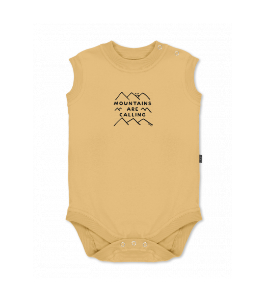 Baby body sleeveless with design for kid with design 1204 MOUNTAINS ARE CALLING in color MUSTARD