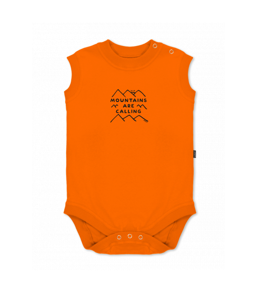 Baby body sleeveless with design for kid with design 1204 MOUNTAINS ARE CALLING in color SIGNAL ORANGE