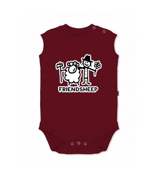 Baby body sleeveless with design for kid with design 1205 FRIENDSHEEP in color DARK RED