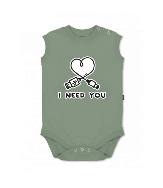 Baby body sleeveless with design for kid with design 1206 I NEED YOU 2 in color OLIVA