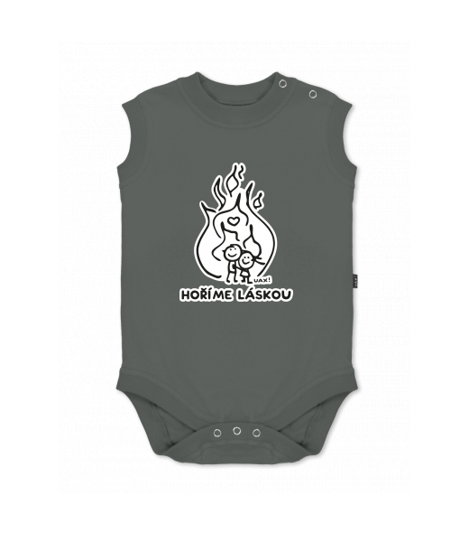 We make sustainable UAX clothing! - hand sewn in the Czech Republic uaxKids uaxAll productsBaby bodyBABY BODY SLEEVELESSdesign 1208 - HOŘÍME LÁSKOUDARK GRAY