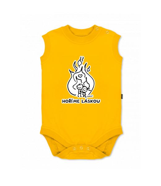 We make sustainable UAX clothing! - hand sewn in the Czech Republic uaxKids uaxAll productsBaby bodyBABY BODY SLEEVELESSdesign 1208 - HOŘÍME LÁSKOUGOLDEN CREAM
