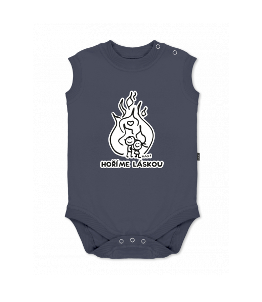 We make sustainable UAX clothing! - hand sewn in the Czech Republic uaxKids uaxAll productsBaby bodyBABY BODY SLEEVELESSdesign 1208 - HOŘÍME LÁSKOUGRAY INK
