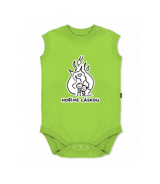 We make sustainable UAX clothing! - hand sewn in the Czech Republic uaxKids uaxAll productsBaby bodyBABY BODY SLEEVELESSdesign 1208 - HOŘÍME LÁSKOUPARROT GREEN