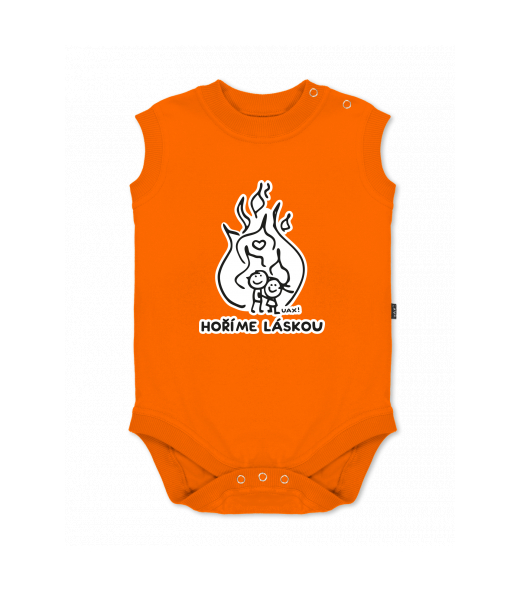 We make sustainable UAX clothing! - hand sewn in the Czech Republic uaxKids uaxAll productsBaby bodyBABY BODY SLEEVELESSdesign 1208 - HOŘÍME LÁSKOUSIGNAL ORANGE