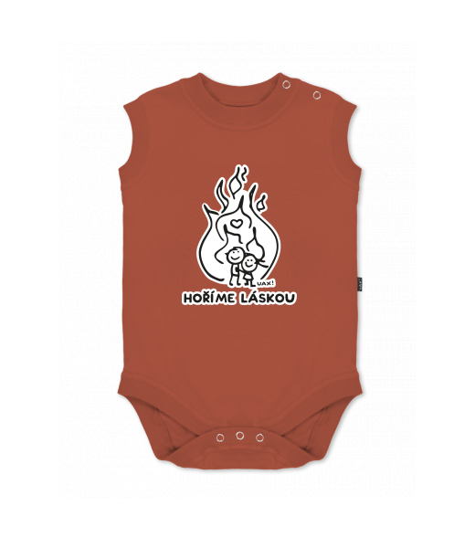 Baby body sleeveless with design for kid with design 1208 HOŘÍME LÁSKOU in color TERRA